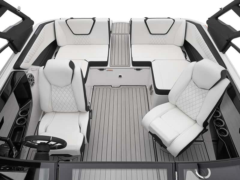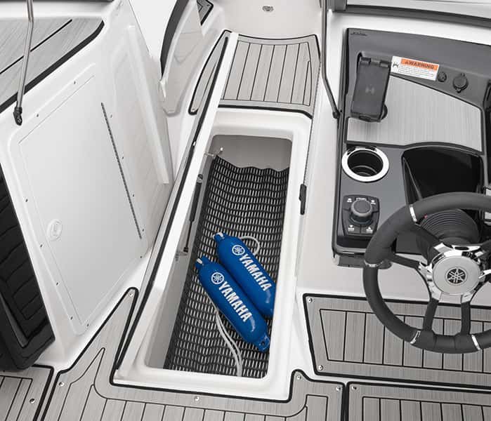 Blending a contemporary design with a deep cockpit and great freeboard, the Yamaha 222S takes full advantage of the 22-foot hull. From the Connext screen to wireless smartphone charging capabilities, the 222S is full-featured and ready to put its twin engines to work while you play.