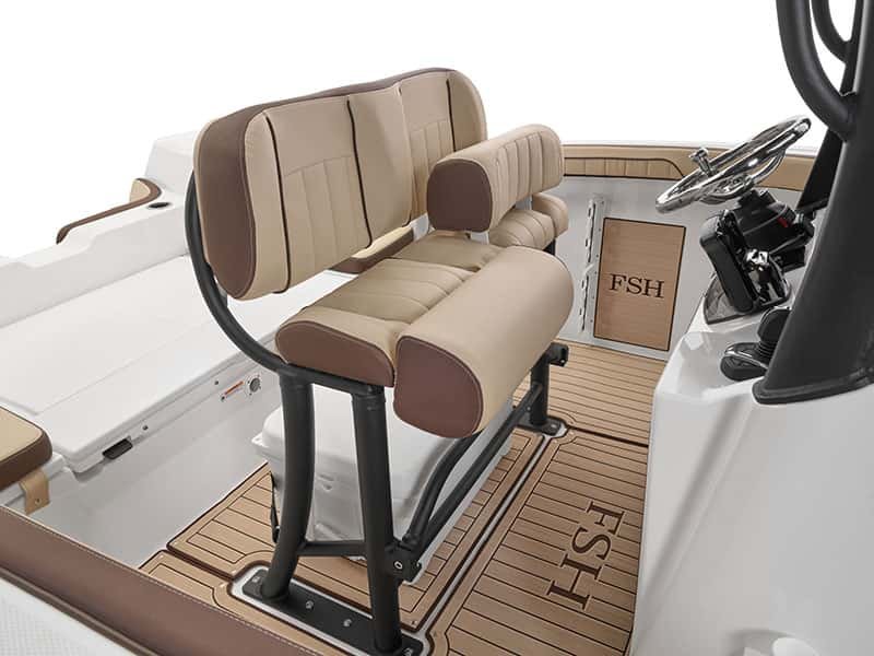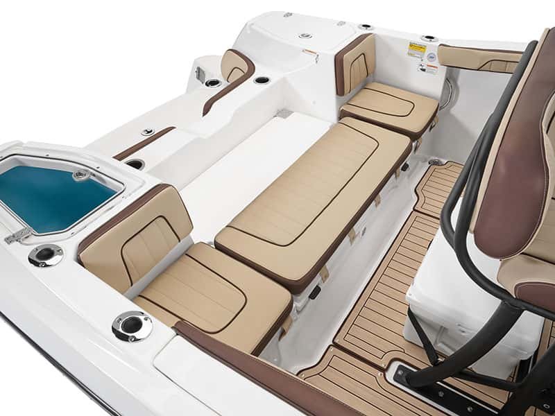 Thoughtfully laid out, the cockpit will fit your every need. With adjustable seating configurations, built-in table anchor points, and cooler tie-downs, it's like bringing your living room to the water.