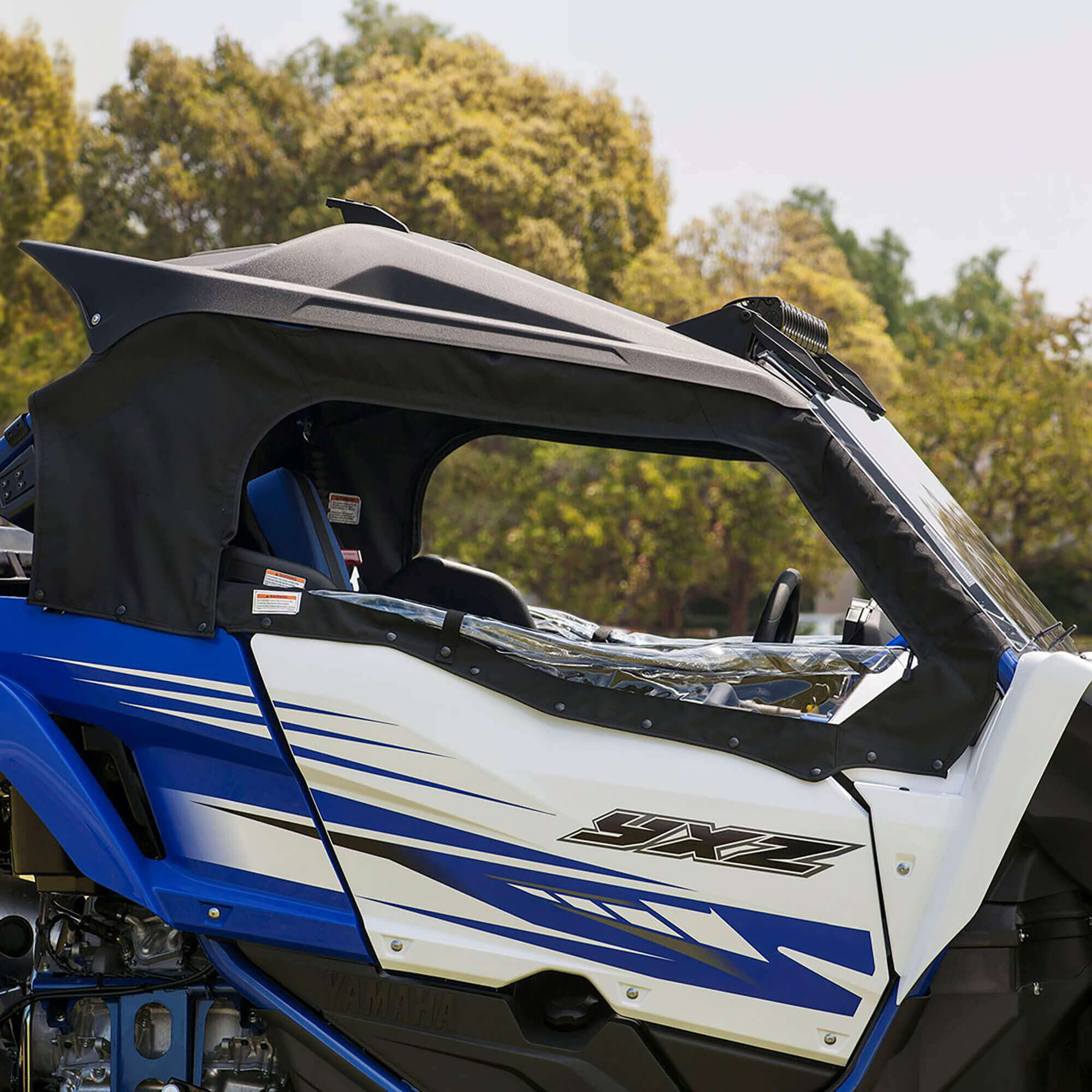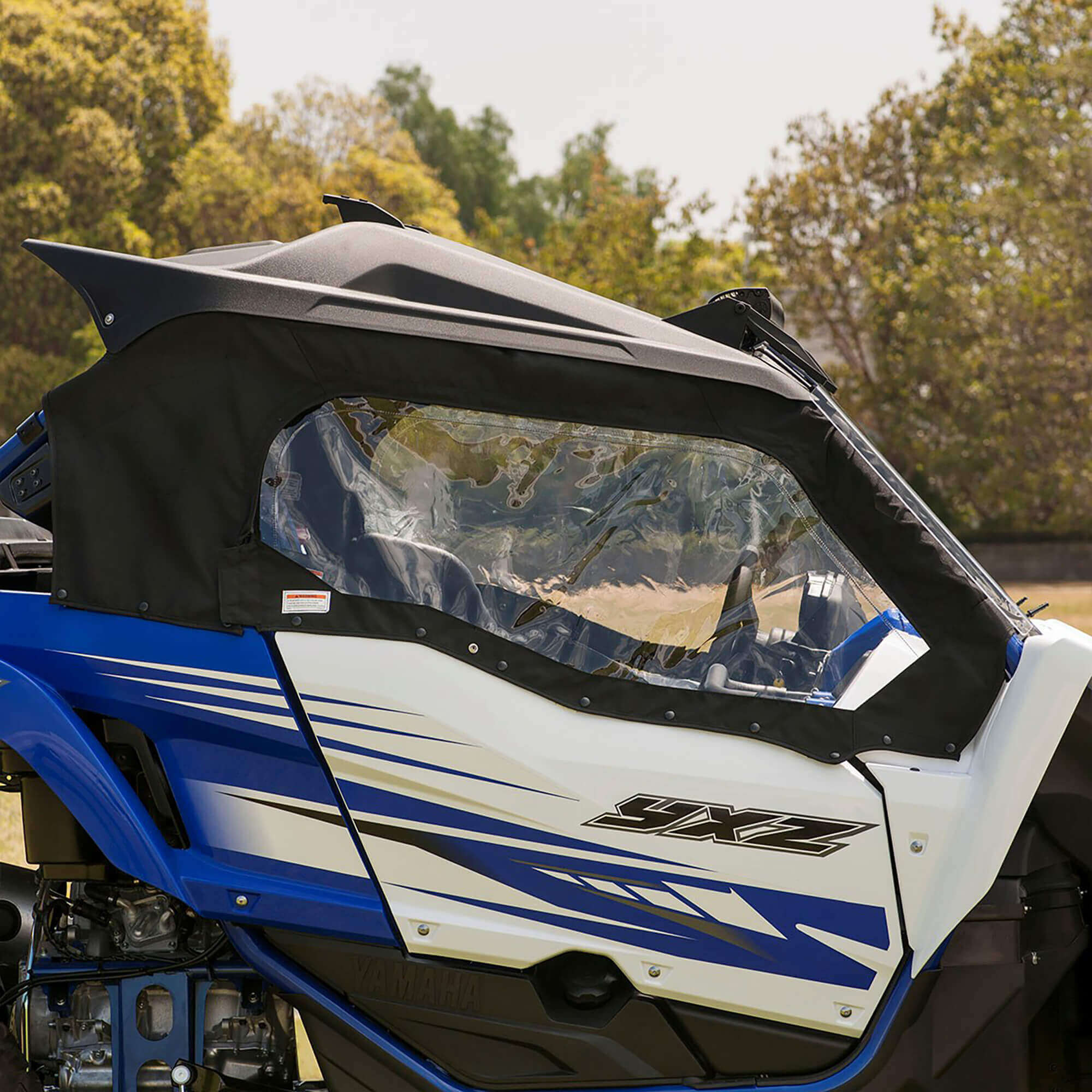 Protects occupants from rain, wind, mud, and light trail debris.