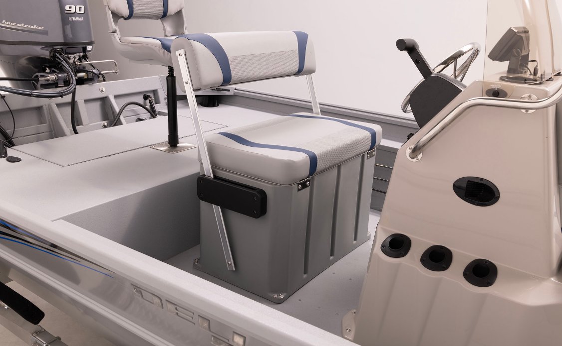 FLIP FLOP SEAT Double-wide helm seat doubles as a cooler and gives the angler options for stern seating in the rear facing position. |