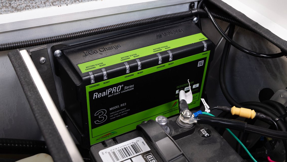 Shown with optional 3 bank battery charger. Comes standard with a 2 bank.